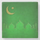Elegant islamic illustration: golden mosque silhouette with a moon and a star on a grungy green background.
