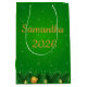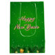 Add a festive finishing touch to your presents with this personalized New Year gift bag in elegant green and gold. Featuring bright green pine branches, golden ornaments and tiny stars, this medium gift bag perfectly matches your New Year invitations, welcome sign and thank you cards from the same collection.