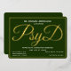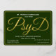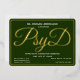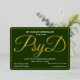 A PsyD graduation party invitation with gold foil, white text, and a green background. Simply add your information, add this invitation to your cart, and celebrate this major accomplishment.