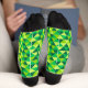 Fun for St Patrick's Day or anytime, these retro style socks have a pattern consisting of diamond and triangle shapes. Colours used include dark green, lime green, and bright green.