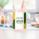 Colleges, universities, high schools, and institutes of higher learning can add sophistication to graduation merchandise with this modern, contemporary can glass design, which features elegant lettering set on forest green, gold, and white backgrounds. Customise with name of school/college/university and academic logo/motto/seal. Colours and font types can be modified as desired. Reverse shows identical design.
