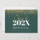 green and gold modern glitter multi photo script stylish graduation class of announcement card. Modern gold and glitter effect and on trend bold typography and script text. Part of a collection.