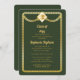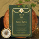 A gold graduation cap and rounded serpentine frame gold tone and green graduation party invitation design that can be personalised for high school, college, university or vocational school graduations. Composite design by Holiday Hearts Designs (rights reserved).