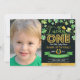 Green Gold Shamrock Lucky Charm 1st Birthday Photo Invitation