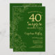 Floral Green Gold Surprise 40th Birthday Party Invitation. Minimalist modern design featuring botanical accents and typography script font. Simple floral invite card perfect for a stylish female surprise bday celebration. Can be customised to any age.