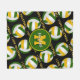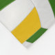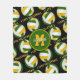 This volleyball team colours fleece blanket features a mirrored pattern of small volleyballs with green, gold and white panels and the sporty font text "I love volleyball" in gold that stretches between the angled rows of volleyballs - athlete name and monogram can be personalised on the large overlying circle pendant - background is customisable black - easily delete the "I love volleyball" text lines, if desired, or replace the monogram with the player's varsity letter or jersey number - by katz_d_zynes