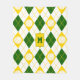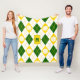 This sporty volleyball team colours fleece blanket features a green, gold and white argyle plaid pattern with gold "stitching" extending diagonally across the diamond shapes and white volleyballs overlying the gold diamond shapes - customise with athlete's monogram - by katz_d_zynes