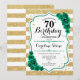 Green Gold White Stripes Roses 70th Birthday Invitation