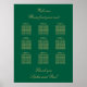 Green Golden Beige 9 Table Seating Chart Poster, please personalise the names of the couple and the names of the guests along with any of the other text that you may wish to personalise. An elegant seating chart featuring stylish elegant text in a golden shade of beige (faux gold / gold look) on Hunter Green.