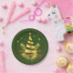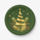 Green Golden Leaves Stars Christmas Tree Paper Plate