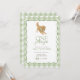 Celebrate your little one’s “one golden year” with this sweet puppy themed invitation! Featuring a playful golden retriever wearing a green gingham bow and a matching green gingham border, this design is perfect for a first birthday party. Easily customise the name, date, and party details right in your browser—no special software needed. A charming choice for dog lovers and darling birthday celebrations alike!