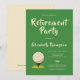 Set the tone for your golf enthusiast’s retirement party celebration with this golf themed party invitation in green and white. It features an illustration of a large golf ball on a green background. You can add more party details via the QR Code on the back of this card.