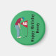 Green personalised golfer, wearing a cap, deep red shirt and blue pants, putting a golf ball into a hole magnet.