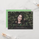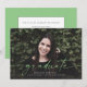 This full bleed photo graduation announcement features the word "graduate" written in green script across the front. It has space for the graduate's name, class year, and school. The back of the card can be used for a personal message or graduation party invitation details.