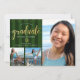 Announce to the world that your favourite grad has reached their milestone with this stunning, simple, modern, personalised announcement. Sparkly, elegant, faux gold glitter handwritten script calligraphy and white sans serif typography overlay a hunter green striped background. Add three photos of your choice and personalise the custom text with your graduate’s name, school name, class year, and graduation date. On the back, add your party information, etc. Matching and coordinating thank you cards, cap toppers, fans, napkins, plates, banners and other graduation goodies are also available in this trendy and stylish collection. Guaranteed to add stylish fun to their special occasion!