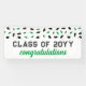 Class of graduation party banner with black and green fonts and graduation caps in black and green.