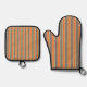 Green, grey and orange stripes pattern oven mitt & pot holder set