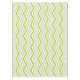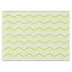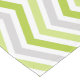 Colourful and fun chevron stripe tablecloth of green, light olive green, grey, and white.
