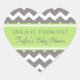 Baby shower thank you favour tag sticker in elegant and fun bright lime apple green and grey chevron zigzags pattern. Customisable with your own text, contact us for a colour change. The perfect way to decorate your baby shower favours and thank your guests for being a part of your special day.