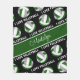 This cute volleyball themed fleece blanket for girls features the realistic image of a volleyball that has green, grey and white panels patterned at an angle with the sporty font text phrase "I love volleyball" in white that stretches between the angled rows of volleyballs - the volleyballs' green & grey panels are blended with a girly kaleidoscopic pattern for a textured appearance - personalise her name in a sophisticated handwritten font on an angled chunky full width green colour strip - background is customisable black - by katz_d_zynes