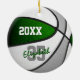 This keepsake basketball ornament for girls or boys features the realistic image of a basketball that has alternating green, white and grey recolored panels - personalise the front and back of ornament with year and athlete's name in an "autograph" style font overlying their jersey number - by katz_d_zynes