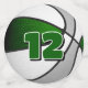 The front and back of each piece of this basketball birthday party confetti features the realistic image of a basketball that has alternating green, white and grey panels - personalise the front of the large piece of confetti with a child's age or jersey number, or delete - by katz_d_zynes