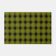 This doormat has a mid-century modern design of solid black diamonds inside black diamond outlines on a field of green.