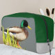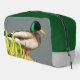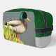 Zippered dopp kit toiletry bag that features the photo image of a green-headed, male Mallard duck along with a solid, green top and light grey coloured sides. Perfect accessory bag for your toiletries for on-the-go travel!