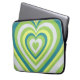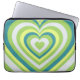 Carry your laptop with love! Featuring a whimsical green hypnotic heart pattern, this retro laptop sleeve is a romantic gift for couples and loved ones.