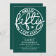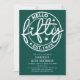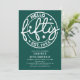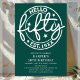 Celebrate a fabulous 50th birthday with a stylish invitation that features eye-catching white typography boldly set against a rich green background. The front proudly announces "Hello Fifty," inviting guests to join in the fun. Personalise it further by adding your year of birth, making it uniquely yours. On the reverse side, share all the delightful details of your party, ensuring everyone knows how to join the celebration of this milestone moment!