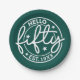 Green Hello Fifty 50th Birthday Paper Plate