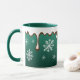 Hot chocolate is dripping down this festive snowflake mug. The designs are from original art.