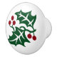 Green Holly and Red Berries Christmas Holiday Ceramic Knob