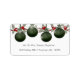 Holiday label with green ornaments hanging from holly bough. Perfect for holiday invitations and cards. Fully customisable text. Coordinating invitation available.