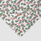 Tissue paper with a vintage holiday pattern of green holly with and bright red berries.