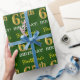 This wrapping paper design features a message like "FirstName’s 65th BIRTHDAY!", with the "65th" having a faux/imitation gold-like colour appearance. The name can be personalised, and the background is coloured green. It could perhaps be used when wrapping gifts being given for somebody’s sixty fifth birthday. [~Z0000179]