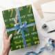 This wrapping paper design features a message like "First-Name’s 71st BIRTHDAY!", with the "71st" having a faux/imitation gold-like colour appearance. The name can be personalised, and the background is coloured green. It could perhaps be used when wrapping gifts being given for somebody’s seventy first birthday. [~Z0000179]