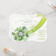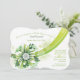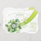 A contemporary, floral invitation in shades of green on white featuring an fanciful daisy with a grunge background. (FV)