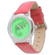 with original design of watercolour and ink illustration by artist Sacha Grossel of brightly coloured green, patterned chameleon against a bright, apple green background. This quirky illustration of this reptile is cute and funny and for lizard and animal lovers everywhere.