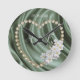 Green,Ivory,Blue,gold Silk & Pearls Round Clock