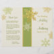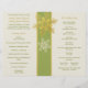 The text on this green, gold, and ivory or champagne snowflake winter wedding program is fully customisable. The program is intended to be folded down the middle when you receive it. To change the text, use the personalise options. However, for more extensive text changes, such as changes to the font, font colour, font size, and/or text placement, use the customise it option. It is recommended this is only purchased as a standard 80lb matte finish. The 100lb paper option is difficult to fold and therefore not recommended. Sophisticated and elegant colours! Perfect for a wedding with a snowflake theme in the winter.