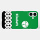This green and black phone case is decorated with some classic elements from Japanese designs. The bottom part features a white yoshiwara chain and a spiral mitsudomoe crest rests near the camera. In the middle... is your own name! Try typing it into the box above and watch the preview image change!