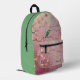 Green Kingfisher on Pink Cherry Blossoms Monogram Printed Backpack