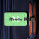 Cool green knitting background with monogram. Personalised monogrammed letter and name tag for suitcases and bags. Elegant typography design. Great gift for family and friends.