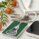 Cool lacrosse keychain featuring unique lax stick and ball illustration on green background for lacrosse player or team coach.