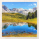 Green Landscape with Pond and Snowy Mountains Glass Coaster