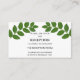 Elegant green laurel leaves header on white Wedding Enclosure Card. This Reception card has a green background.