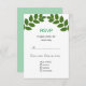 Elegant green laurel leaves on white Wedding RSVP Cards. The back side has three bay leaves on emerald green background. Green Plant leaves Marriage cards.