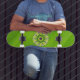 Original artwork featuring a close-up leaf pattern in lime green colour tones and styled to reflect a modern influence. The silhouette is a mandala art circle, placed in the middle of the deck. These cool boards are made of the best maple wood and quality printing.