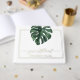 Features vibrant monstera leaves and lush greenery on the cover, with subtle accents that blend seamlessly with botanical or tropical wedding themes. Personalise with the couple’s names and wedding date.
